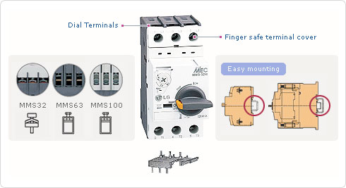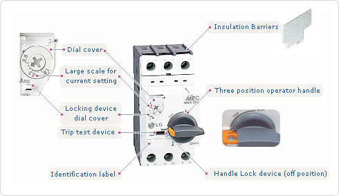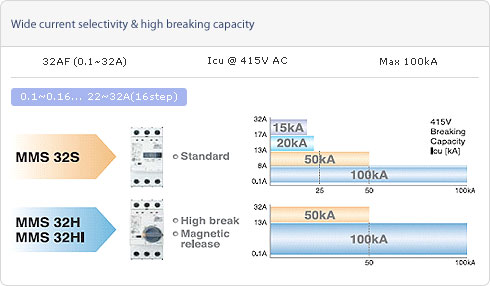 - 完整的範圍可達 100A, 在415 VAC分斷能力高達100KA